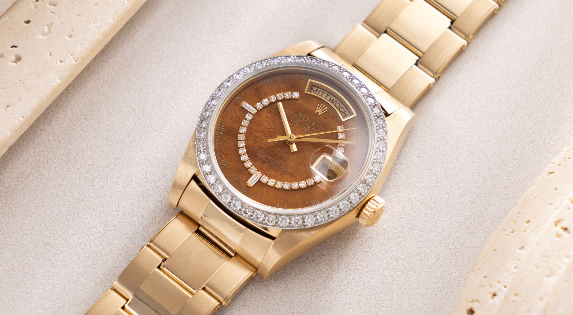 Rolex Day-Date Wood Diamond String Dial ref. 18048