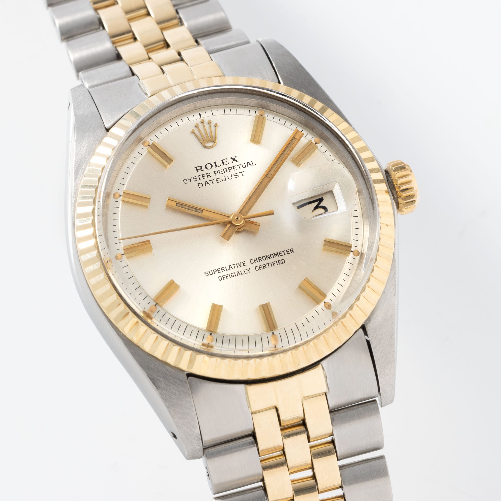 Rolex Datejust 1601/3 Silbernes Wide Boy Zifferblatt